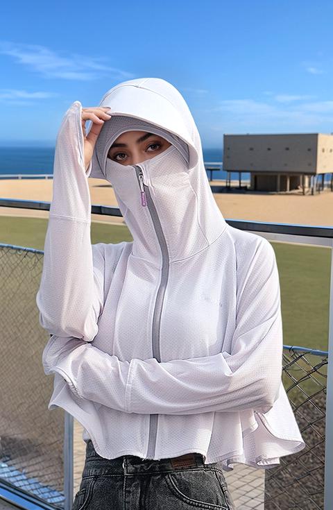 A Person In A White Hoodie And Denim Stands By A Balcony Overlooking A Serene Beachside