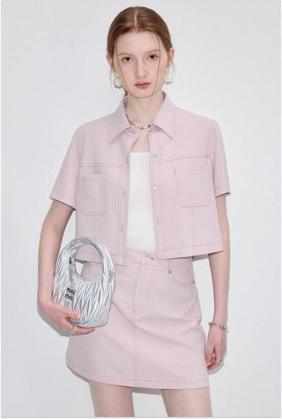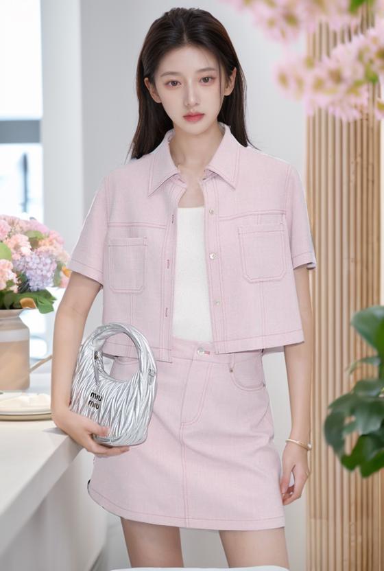 A Woman In A Stylish Pink Outfit Holds A Designer Handbag While Standing In A Chic Well-Decorated Room
