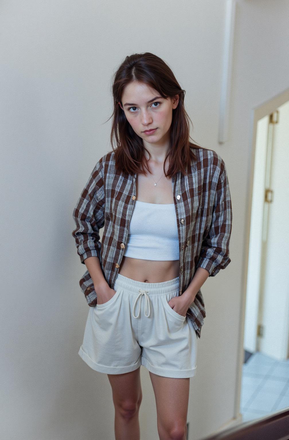 A Woman Stands Confidently In A Bright Modern Indoor Space Wearing Casual Clothing