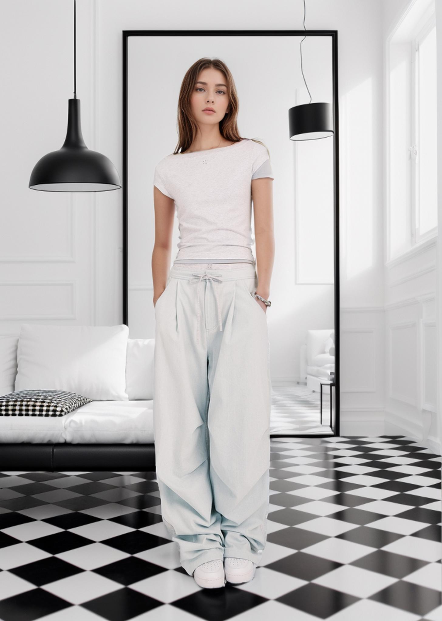 站在简约的黑白客厅里,