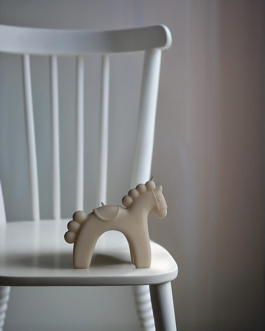 A Minimalistic White Chair Serves As The Perfect Backdrop For A Charming Small Horse Figurine