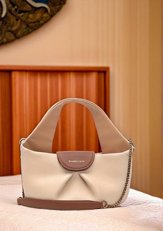 A Stylish Handbag Rests Elegantly On A Bed In A Cozy Well-Decorated Room