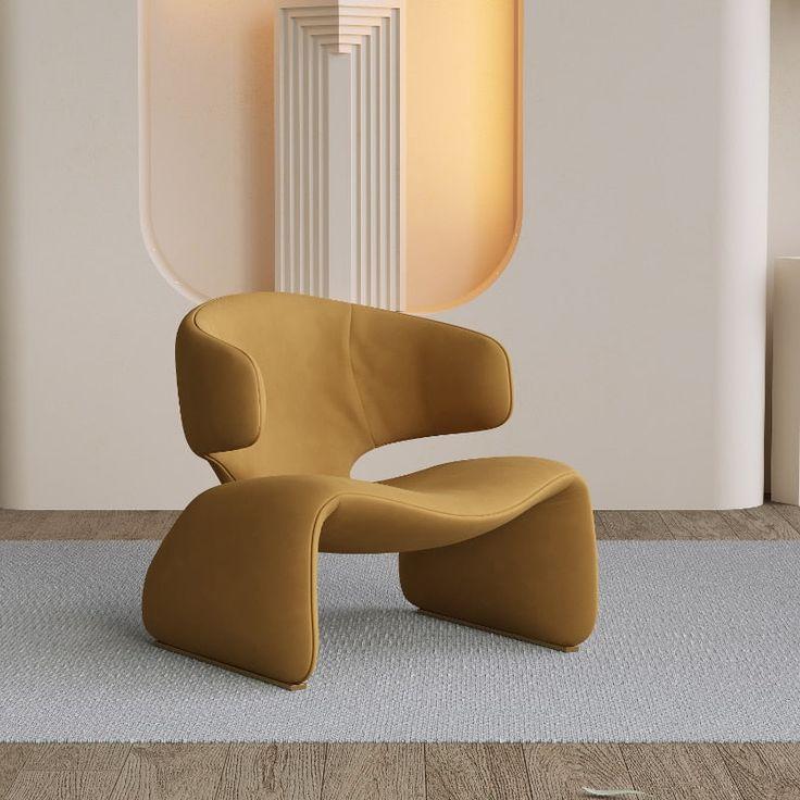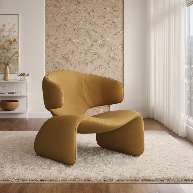 A Stylish Mustard-Colored Chair Is Set Against A Modern Elegant Living Room Backdrop With Soft Natural Lighting