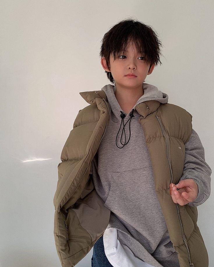 一个小男孩,站在街头,看着远处