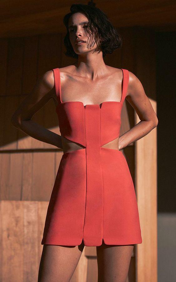 A Woman In A Stylish Red Dress Enjoys A Sunny Day By The Waterfront