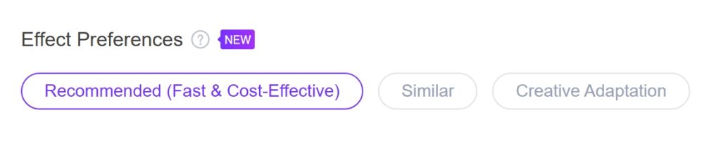 1. The style preferences have been expanded with new options — you can select Recommended, Similar, or the Creative Adaptation.